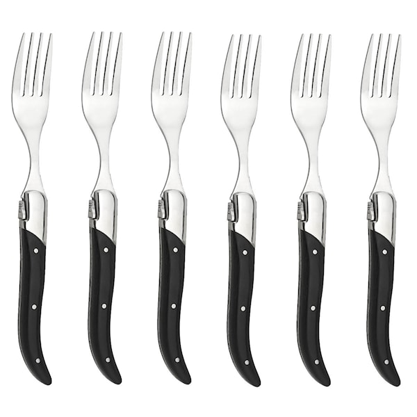 • Sex stekgafflar med handtag i ebenholts