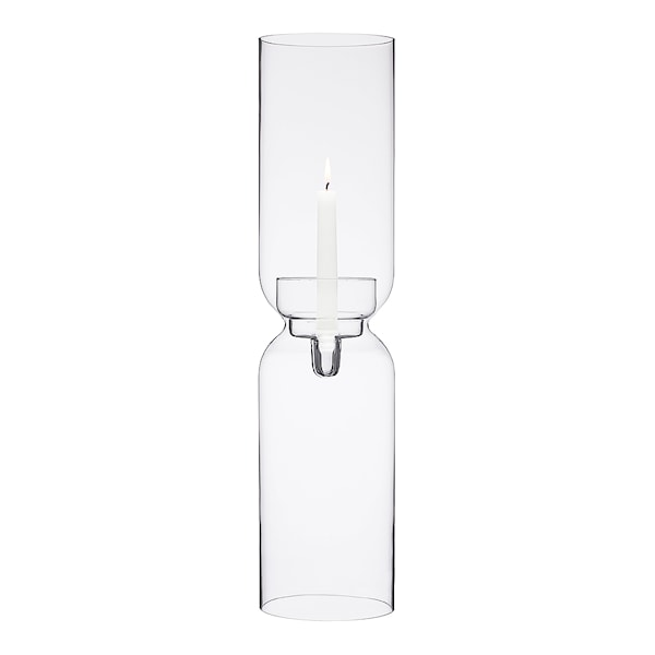 Lantern är en ljuslykta helt i glas med plats för ett värmeljus eller kronljus. Den avskalade designen skapar illusionen av att ljuset svävar då det är tänt. Ljusstaken är formgiven av Harri Koskinen för Iittala och finns i olika storlekar och färger.