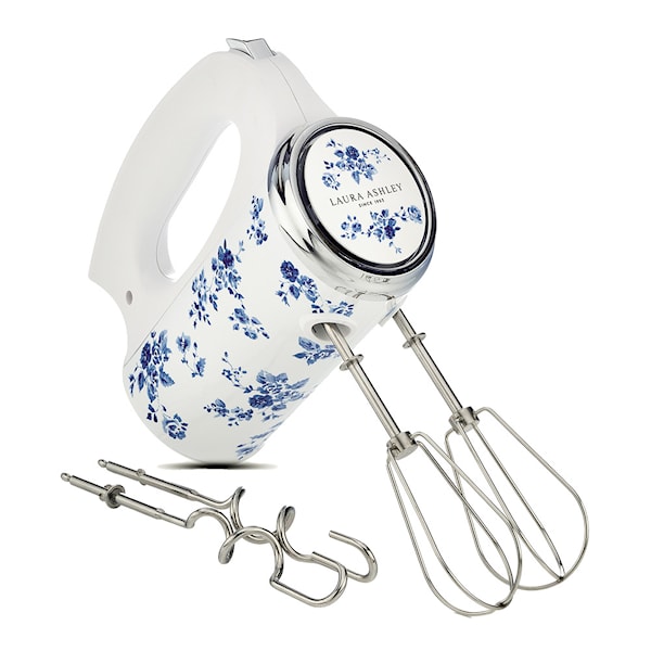 Det ergonomiska handtaget ger ett bekvämt grepp och gör elvispen behaglig att använda även under längre bakningspass. Tillbehören i rostfritt stål består av både vispar och degkrokar, så att du enkelt kan anpassa verktyget efter uppgiften. En praktisk utlösningsknapp gör det smidigt att ta av tillbehören efter användning. Det välkända Laura Ashley-mönstret ger köket en elegant och fräsch känsla.