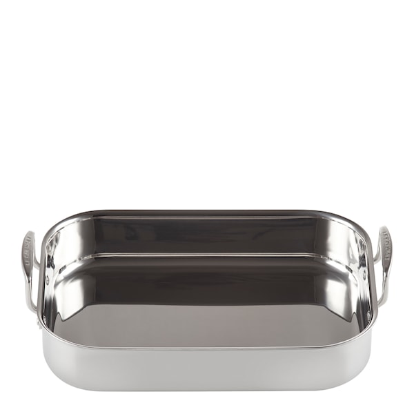 Le Creuset 3-Ply ugnsform 25x35 cm i rostfritt stål är en pålitlig hjälpreda för både vardag och fest. Tack vare den tredelade konstruktionen med aluminiumkärna mellan två lager rostfritt stål sprids värmen snabbt och jämnt, vilket ger jämn gräddning och fin stekyta varje gång.