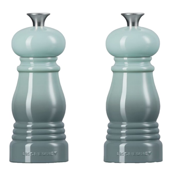 Classic salt- och pepparkvarnset i 2 delar, 11 cm, i den eleganta färgen Sea Salt från Le Creuset kombinerar funktionalitet och estetik och tillför en sofistikerad touch till både köket och dukningen. Med sin stilrena design och kompakta storlek är detta set perfekt för daglig användning och passar utmärkt vid särskilda tillfällen där detaljerna spelar roll.