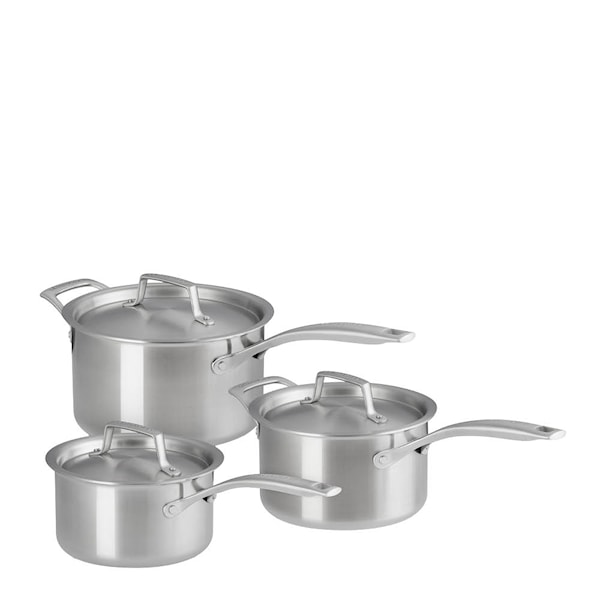 Le Creuset Essential 3-ply kastrullset ger dig tre kastruller i storlekarna 2,1 L, 2,7 L och 3,2 L – perfekt för allt från såser till lite större rätter. Den robusta flerskiktskonstruktionen i rostfritt stål ger jämn värmefördelning och ser till att maten tillagas perfekt varje gång.