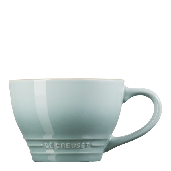 Jumbokopp, 40 cl, i den delikata färgen Sea Salt från Le Creuset är det perfekta valet för dig som vill njuta av en stor kopp cappuccino, varm choklad eller favorit-te på ett elegant och funktionellt sätt. Med sin tidlösa design tillför koppen en sofistikerad touch till köket och bordet, samtidigt som den generösa volymen gör den idealisk för långa, avkopplande stunder.