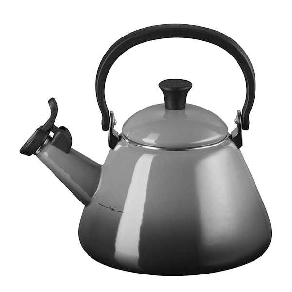 Le Creuset Kone vattenkittel med vissla 1,6 L är en pålitlig klassiker i emaljerat stål som kombinerar stilren form med praktisk funktion. Den koniska silhuetten ger effektiv värmefördelning, och visslan låter dig veta precis när vattnet är klart.