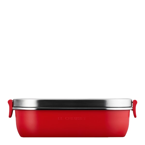 Le Creuset On the Go matlåda 0,9L i Cerise är ett säkert och stilrent val för dig som behöver en slitstark matlåda för jobb, skola eller utflykter. Den är tillverkad i rostfritt stål med dubbelvägg och kopparlager som håller utsidan fri från kondens – perfekt för fräsch förvaring i väskan.
