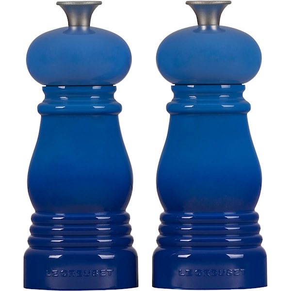 Stilrena och effektiva kryddkvarnar från Le Creuset i högglansig akryl med keramiskt malverk. Akryl är ett starkt och lätt material som bidrar till att kvarnarna håller länge och det keramiska malverket är mycket effektivt och hållbart samt resistent mot korrosion. Dessa kvarnar från Le Creuset maler saltet och pepparn så grovt eller fint du önskar och kan regleras på knoppen. Knoppen är av rostfritt stål och har samma form som knoppen på Le Creusets gjutjärnsgrytor, och är ingraverade med S för salt och P för peppar.