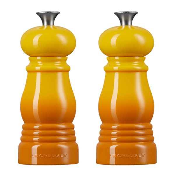 Stilrena och effektiva kryddkvarnar från Le Creuset i högglansig akryl med keramiskt malverk. Akryl är ett starkt och lätt material som bidrar till att kvarnarna håller länge och det keramiska malverket är mycket effektivt och hållbart samt resistent mot korrosion. Dessa kvarnar från Le Creuset maler saltet och pepparn så grovt eller fint du önskar och kan regleras på knoppen. Knoppen är av rostfritt stål och har samma form som knoppen på Le Creusets gjutjärnsgrytor, och är ingraverade med S för salt och P för peppar.