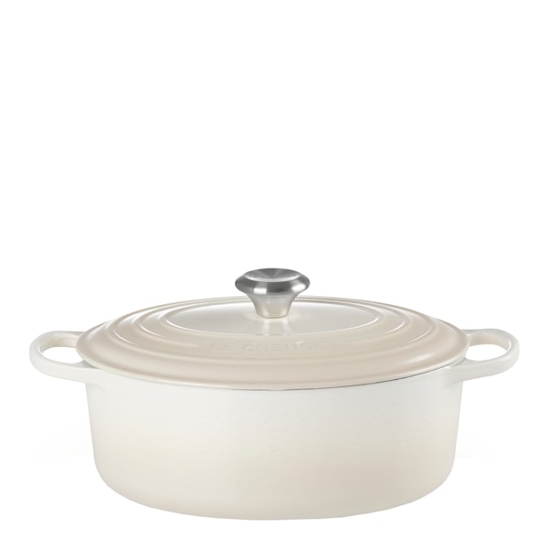 Le Creuset Signature oval gjutjärnsgryta 31 cm 6,3 L är en pålitlig gryta för dig som lagar mycket och gärna. Handgjuten i Frankrike, med en design som passar perfekt för större råvaror som stek, kyckling eller hel blomkål.