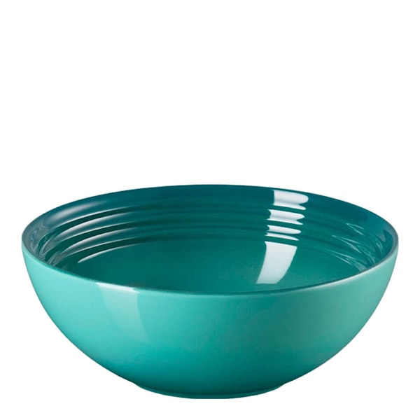 Skålen är tillverkad i robust stengods med emaljerad yta som motstår repor och är enkel att diska. Den tål mikrovågsugn, ugn och diskmaskin – och finns i flera av Le Creusets karaktäristiska färger för en mer personlig dukning.