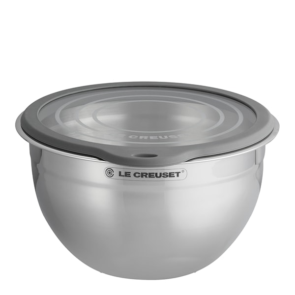 Le Creuset skål med glaslock på 23 cm och 2,8 liter erbjuder en perfekt kombination av funktion och design. Den halksäkra silikonbotten ser till att skålen står stadigt under användning, medan det härdade glaslocket håller innehållet fräscht och skyddar mot spill.