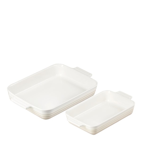 Le Creuset Ugnsform 2-pack består av två stengodsformar i klassisk design – perfekta för allt från ugnsrostade grönsaker till gratänger, kyckling och fisk. De slitstarka formarna har en emaljerad sandfärgad insida som gör dem lätta att rengöra och förhindrar att mat inte bränner fast.