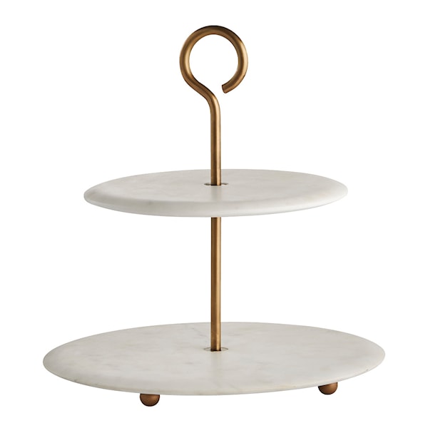Ellia kakfat på 2 våningar, 35 cm i sandfärgad marmor från Lene Bjerre, är en elegant och praktisk lösning för att servera läckra sidorätter och kakor. Kännetecknande för Ellia-serien är den vackra marmorn, som ger varje produkt en unik och sofistikerad charm. Varje kakfat är utskuret från en stor bit marmor och formas noggrant av skickliga hantverkare. Denna metod resulterar i att utseendet och storleken kan variera, vilket gör varje kakfat unikt med sitt eget uttryck.