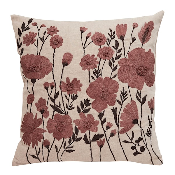 Lyft hemmets inredning med Emiline kuddfodral 50x50 cm från Lene Bjerre. Kuddfodralet är broderat med fina blomstermönster i naturliga toner, vackert kontrasterade mot en varm bakgrund.