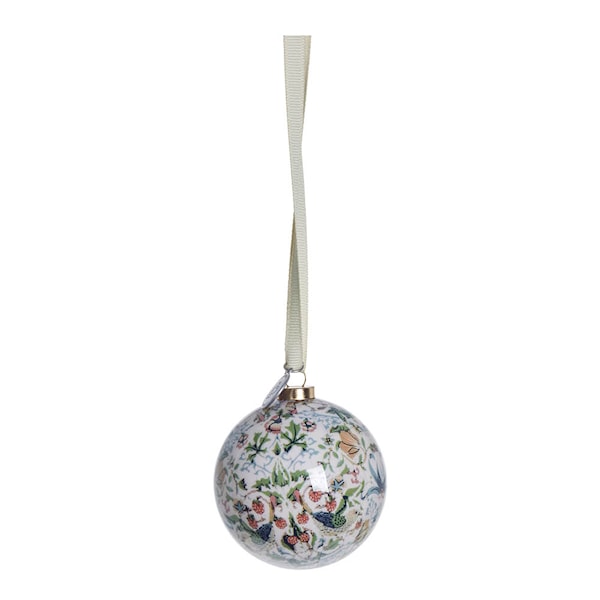 Skapa en harmonisk och elegant gran med Herle juldekoration från Lene Bjerre. Den här julkulan är 6 cm i diameter och har en mild råvit grundton som kompletteras av ett vackert, blommigt mönster i mjuka, dova färger. Kombinationen ger ett sobert och klassiskt intryck – perfekt för dig som vill ha en mer nedtonad och stämningsfull julstil.