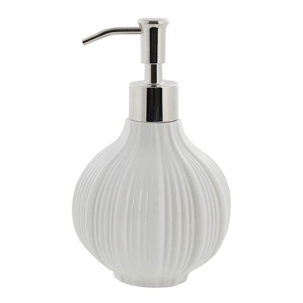 Lene Bjerres Lily tvålpump är ett stilrent val för dig som vill ha ett elegant och genomtänkt badrumsuttryck. Tillverkad i keramik och dekorerad med ett subtilt randmönster, blir den en sofistikerad detalj i badrummet. Tvålpumpen mäter 10,5 x 16,3 cm och fungerar både som en praktisk och dekorativ inredningsdetalj.