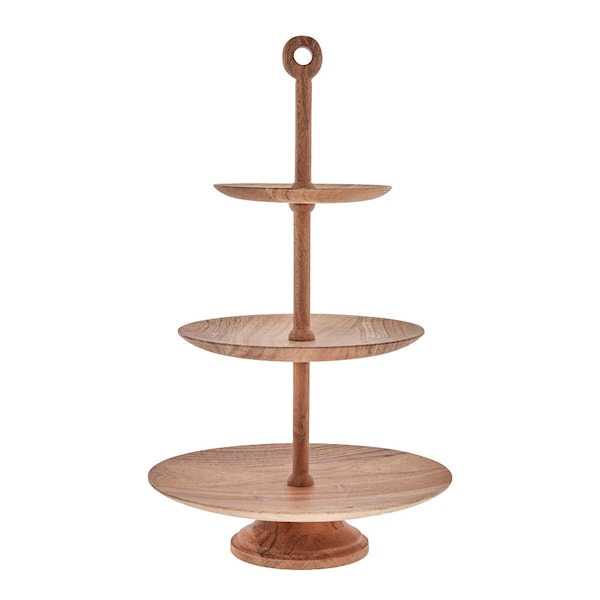 Merle våningsfat 44 cm från Lene Bjerre är ett smakfullt tillägg till dukningen. Tillverkat i massivt trä med tre serveringsnivåer, erbjuder det både höjd och variation – idealiskt för frukt, bakverk eller småplock.