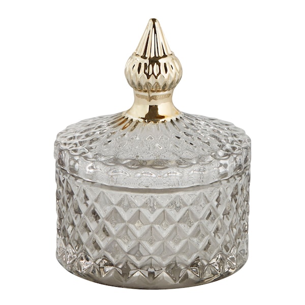 Miya burk 10,5 cm från Lene Bjerre är mer än bara en glasburk – den är ett konstverk! Denna burk från Miya-serien tillför en estetisk dimension till din inredning samtidigt som den är praktisk. Perfekt för att förvara smycken eller andra små prydnadssaker, gör Miya-burken både smart och stilfull.