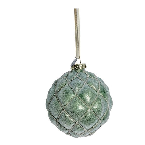 Den djupa gröna nyansen ger en stillsam och elegant kontrast till andra julelement, och det konstnärliga detaljarbetet ger kulan en tydlig särprägel. Glaset reflekterar ljuset på ett sätt som skapar en varm och magisk stämning i rummet.