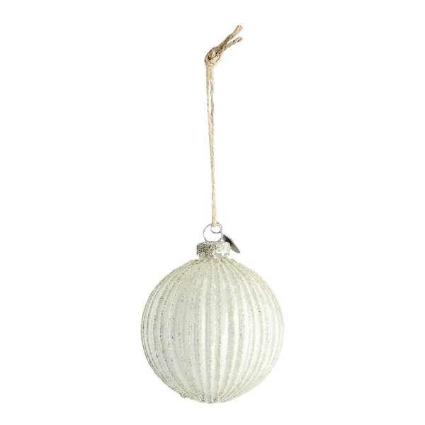 Norille julkula 9x8 cm benvit från Lene Bjerre är en vacker handgjord glaskula i en tidlös och elegant färg. Varje kula är unik tack vare att den är munnblåst och handmålad.