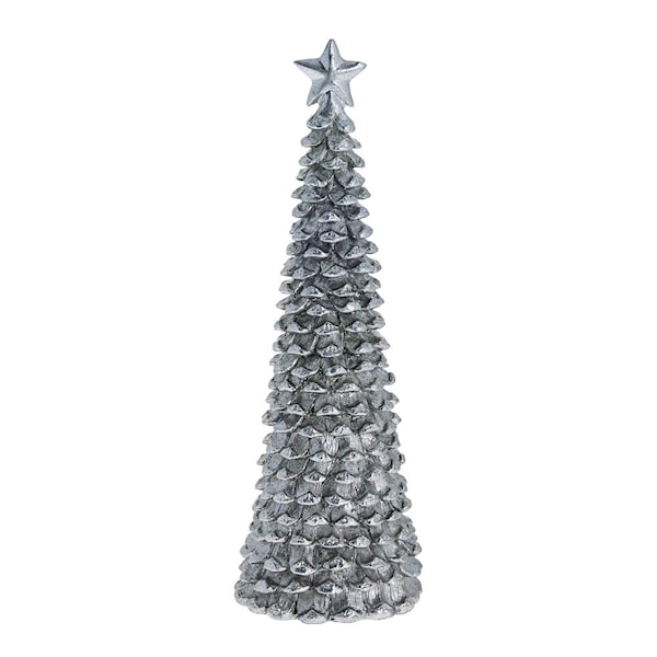 Granen är tillverkad i polyresin, ett material som låter de fina detaljerna och de skulpterade lagren framträda tydligt. Den antika silverfinishen ger ytan ett mjukt skimmer och fångar ljuset på ett subtilt sätt, vilket skapar ett spel mellan glans och struktur. Resultatet blir en dekoration som känns exklusiv utan att ta över rummet.