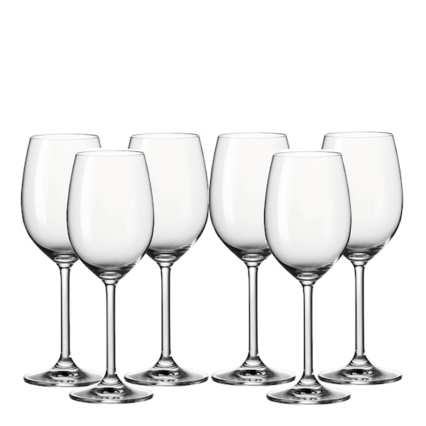 Vitvinsglas i serien Daily, i 6-pack, från Leonardo. Daily är tillverkad i stöttåligt kristallglas (Teqton). DAILY vitvinsglas från Leonardo är ett glas utöver det vanliga. Daily förgyller dukningen och blir ett vackert inslag i ditt vitrinskåp mellan middagarna. Leonardo har i över 100 år skapat unika hantverk i glas som berättar om mänsklig gemenskap, och om de små och stora stunderna i livet tillsammans.