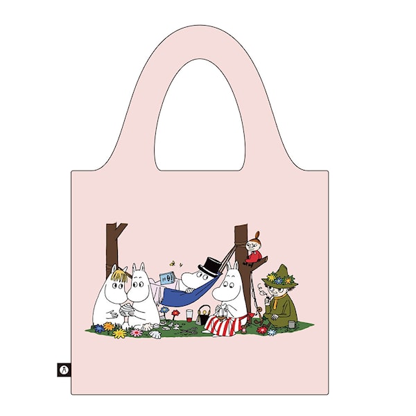 Les Artistes Mumin shoppingkasse 20 L Picknick rosa kombinerar funktionalitet med illustrationer från Mumins värld. Denna shoppingpåse är tillverkad av återvunna plastflaskor och rymmer 20 liter – ett praktiskt alternativ för dagliga ärenden, utflykter eller som en extra kasse att ha i väskan.