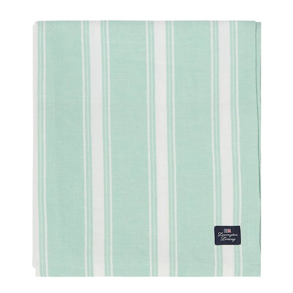 Lexington randig duk i linne/bomull 180x180 cm i grönt och vitt ger bordet en fräsch och tidlös känsla med sitt klassiska randmönster. Duken är tillverkad i en blandning av 55% linne och 45% bomull, vilket ger en naturlig struktur med en mjuk och behaglig känsla. De ljusa vårfärgerna tillsammans med de rena ränderna skapar ett balanserat och långvarigt uttryck.