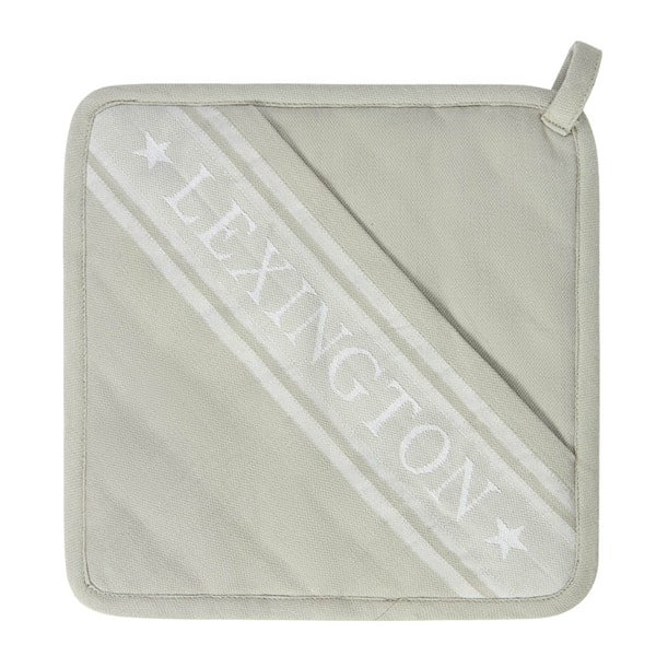 Denna eleganta grytlapp från Lexington ger köket ett klassiskt och genomarbetat uttryck. Jacquardvävda ränder och stjärnmönster i kombination med Lexington-loggan skapar en stilren detalj som också är mycket funktionell. Den är tillverkad i 100% bomull och har en rejäl tjocklek som ger ett effektivt skydd mot värme.