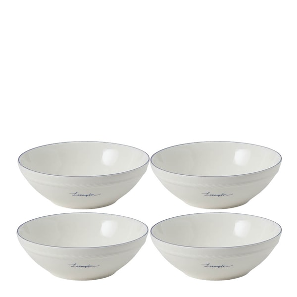 Upptäck Lexington Icons skålar – 4-pack à 15,5 cm i vitt/blått. Tillverkade i porslin med glansig finish, handmålade kantlinjer och repdetaljer för ett klassiskt och maritimt intryck.