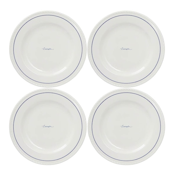 Icons tallrikar från Lexington i vitt/blått – 4-pack à 22 cm – är tillverkade i porslin med maritima inslag som handmålade linjer, repstruktur och glansig finish. En tidlös kombination av funktion och form.