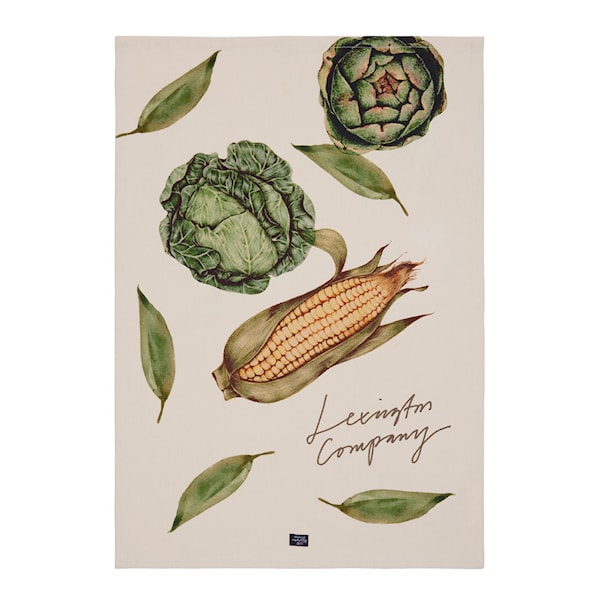 Kökshandduk i 100 % bomull från Lexington kombinerar funktionalitet med ett säsongsinspirerat designuttryck. Det vita och olivgröna grönsaksmotivet ger ett fräscht intryck som för med sig en känsla av trädgård in i köket, samtidigt som det behåller en elegant och balanserad stil.