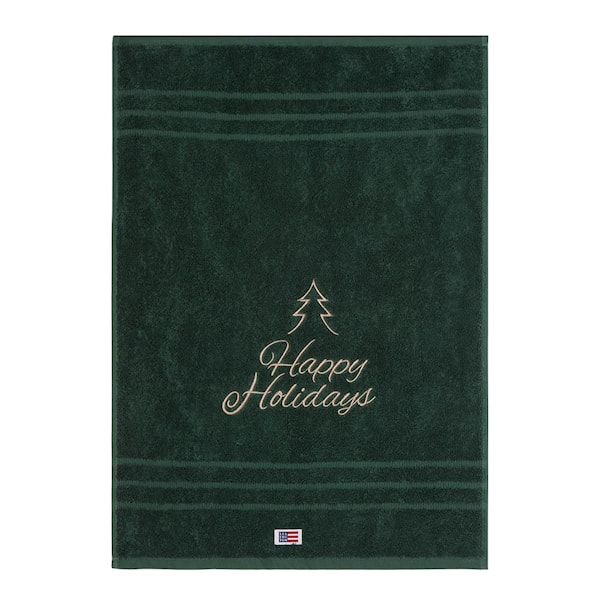 Skapa ett elegant och säsongsbetonat uttryck i badrummet med Lexingtons Happy Holidays-handduk, 50x70 cm i junipergrönt. Det broderade ”Happy Holidays” i beige tillför en sofistikerad och varm känsla.