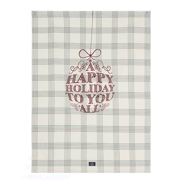 Garnfärgat rutmönster och Happy Holiday-tryck