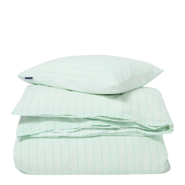 Lexington Striped Cotton Percale påslakanset 220x220 cm vit/grön är skapat för dig som uppskattar tidlös formgivning och material med tydlig kvalitet. De klassiska ränderna ger ett rent och harmoniskt uttryck, medan den omvända färgsättningen på båda sidor tillför subtil variation.