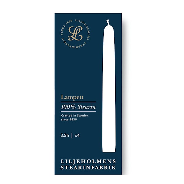 Lampettljus 18,6 cm 4-pack vit från Liljeholmens Stearinfabrik är det perfekta valet för dig som söker eleganta och tidlösa ljus i klassiskt vitt. Dessa smäckra ljus, tillverkade av 100% stearin och Svanenmärkta, har en diameter på 1,9 cm och passar perfekt i lampetter, väggljusstakar och mindre ljusstakar. Med en brinntid på cirka 3,5 timmar skapar de en mjuk och harmonisk belysning som förhöjer atmosfären i vilket rum som helst. Liljeholmens gedigna hantverk och höga kvalitet gör dessa lampettljus till ett utmärkt val för både vardag och fest.