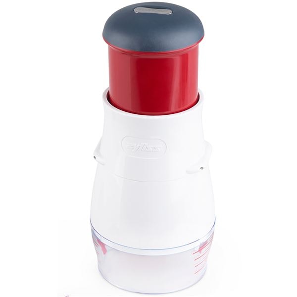 Manuell hackare från Zyliss som effektivt hackar grönsaker, nötter, choklad och hårda ostar. Zyliss, etablerat 1951, är kända världen över för sina innovativa köksredskap som gör köksarbetet smidigt och effektivt. Med över sex decennier i branschen har Zyliss etablerat sig som ett favoritmärke bland både hemmakockar och professionella kockar.