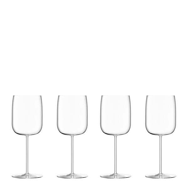Borough vinglas från LSA International levereras i ett set om fyra, med en kapacitet på 38 cl per glas. Glasen har eleganta, raka sidor och en smal fot som skapar ett modernt och balanserat uttryck. Den rena och stilfulla formen gör dem väl lämpade för både rödvin och vitt vin.