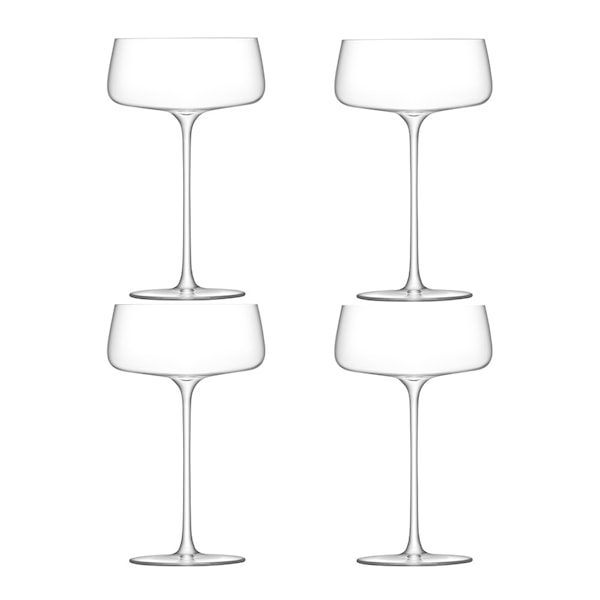 Metropolitan champagneglas coupe från LSA International levereras i set om fyra eleganta glas à 30 cl. Glasen har en kantig profil och en hög, smal fot som ger ett modernt och sofistikerat uttryck.