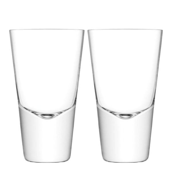 Set med två shotglas med konisk form och solid glasbotten Designade för vodka, tequila och annan sprit.