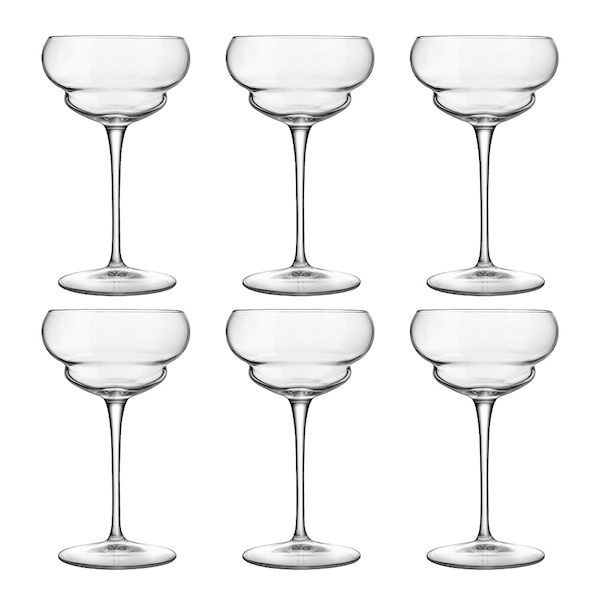 Backdoor cocktailglas Nick & Nora 17 cl i 6-pack från Luigi Bormioli är en del av den exklusiva Backdoor '20s-serien, inspirerad av de hemliga cocktailbarerna från förbudstiden i USA. Glasens unika design, med harmoniska linjer och en naturinspirerad estetik, gör dem till ett perfekt val för sofistikerade serveringar. Detta set med sex glas är idealiskt för eleganta cocktails och sätter en lyxig ram kring varje tillfälle.