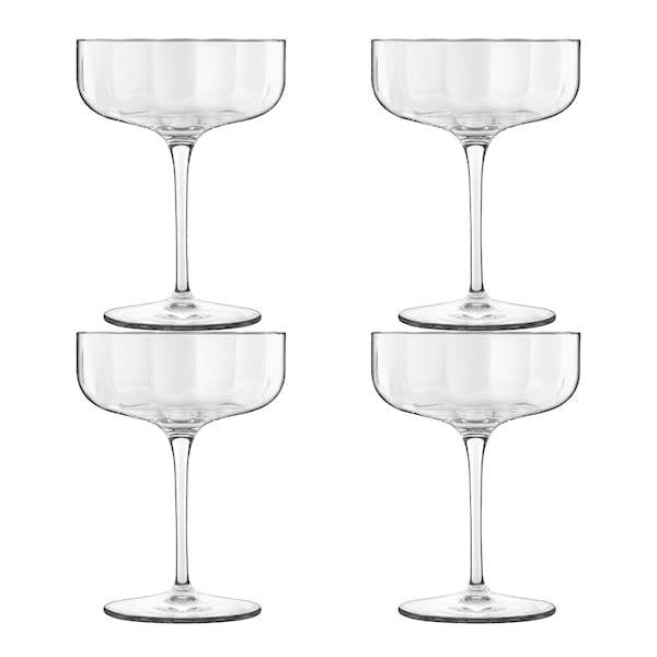 Luigi Bormioli Jazz champagnekupa 30 cl i 4-pack förenar art deco-inspirerad design med funktionalitet. De ribbade detaljerna och de geometriska linjerna ger glasen en unik karaktär som framhäver både den visuella och smakmässiga kvaliteten på drycken. Perfekta för champagne, tillför Jazz-serien en känsla av lyx och glamour till varje tillfälle. Varje glas är ett litet mästerverk, skapat för att imponera.