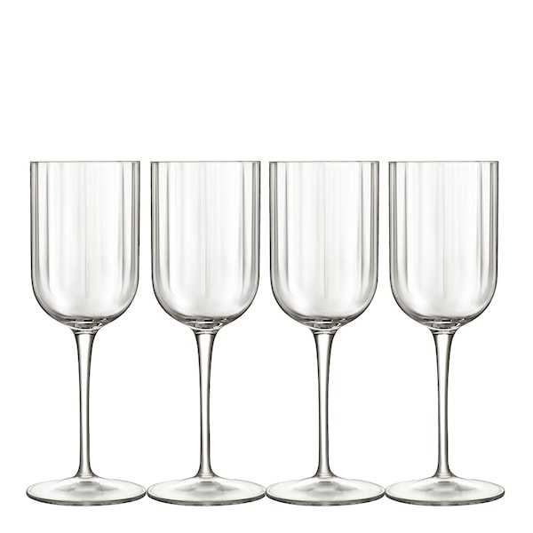 Luigi Bormiolis Jazz cocktailglas Negroni på 28 cl i 4-pack kombinerar sofistikerad design med art deco-inspirerad elegans. De dekadenta ribbade detaljerna och symmetriska linjerna skapar en estetisk djup som höjer cocktailupplevelsen. Perfekta för servering av Negroni och andra drinkar, ger dessa glas en touch av stil och glamour.