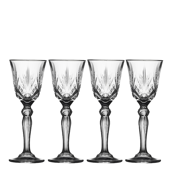 Melodia snapsglas 5 cl i 4-pack från Lyngby Glas är det perfekta valet för att ge dina gäster en minnesvärd upplevelse. Dessa eleganta snapsglas framhäver dryckens nyanser genom glasets vackra mönster, där ljus och skuggor reflekteras för att skapa en förtrollande effekt. Glasen passar utmärkt för en god snaps, ett varmt och fylligt portvin, smakrik likör eller ett sött dessertvin. De tål maskindisk, vilket gör rengöringen enkel och bekväm. Varje glas rymmer 5 cl, och förpackningen innehåller fyra glas.