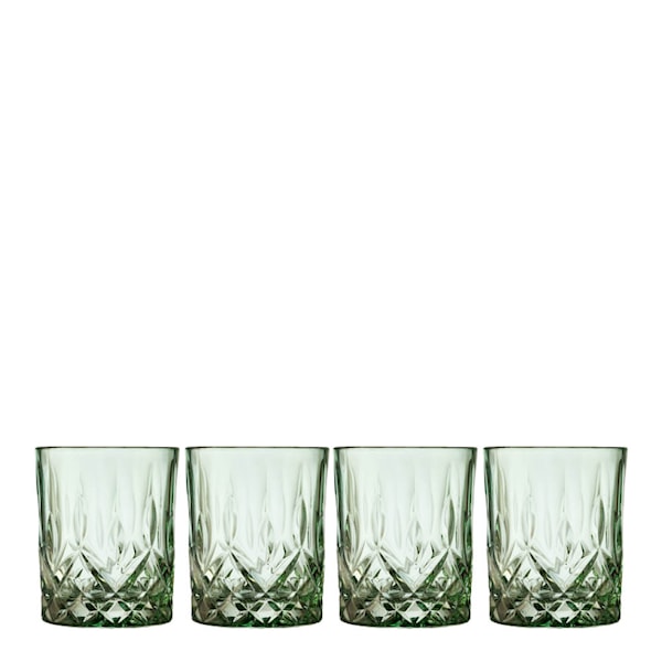 Lyngby Glas Sorrento whiskyglas 32 cl i 4-pack kombinerar genomfärgat glas med ett elegant fasettslipat mönster som reflekterar ljuset på ett exklusivt sätt. Formen och känslan i glaset gör varje dryck – från vatten till whisky – till en upplevelse.