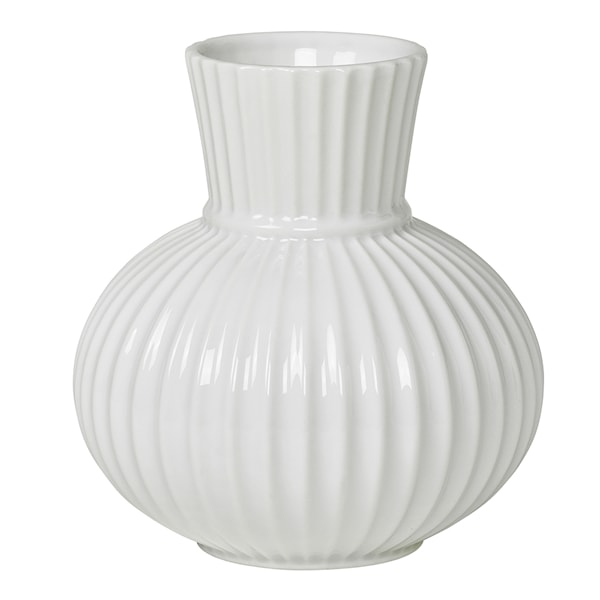 Lyngby Tura Vas 14.5 cm från Lyngby Porcelain är den perfekta vasen att förena skönhet och funktion. Med sina 14,5 cm är den enkel att placera på bordet eller fönsterbrädan. Klassisk rund form nedtill med en smalare hals upptill gör att den passar till en mängd olika blommor.