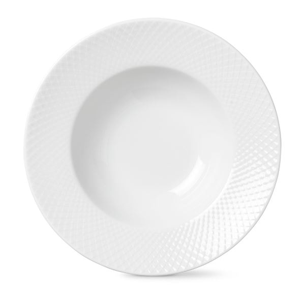 En elegant tallrik från Rhombe-serien, designad av Lyngby Porcelæn. Perfekt för pastarätter och soppor, vilket ger den dess namn – Rhombe pastatallrik. Tallriken har en diameter på 24,5 cm. Dess stilrena design och diskreta mönster knyter tydligt an till Rhombe-serien. Använd pastatallriken både till vardags och vid särskilda tillfällen. Låt dina gäster njuta av dess skönhet vid middagsbordet. Denna Lyngby-tallrik blir en tidlös dekoration med sitt klassiska uttryck och fungerar även fint som prydnad i ett vitrinskåp.