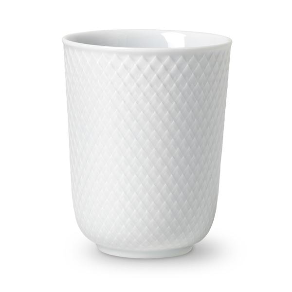 Rena linjer och kritvitt porslin med arkivinspirerat mönster. Rhombe-muggen hyllar den klassiska servisen med en nytolkning av ett populärt mönster från Lyngby Porcelæns designarkiv. Kombinera vita eller färgade delar efter smak. Två års garanti ingår.