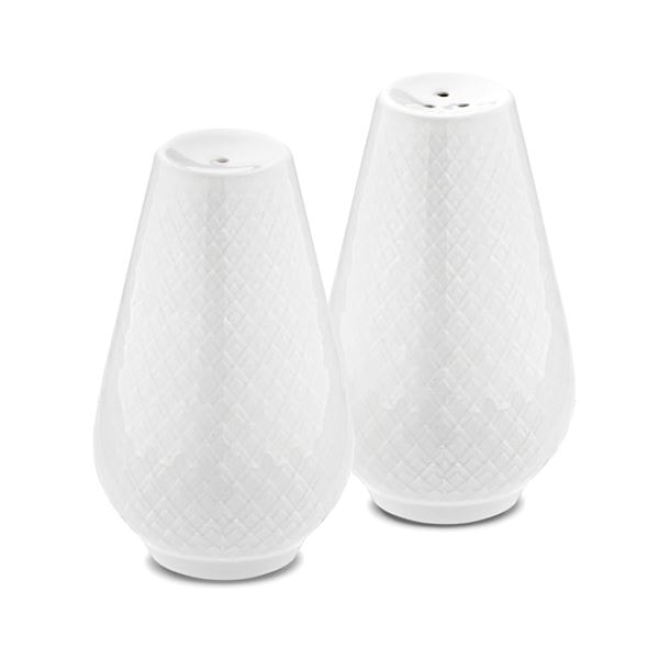 Det eleganta Rhombe salt- och pepparsetet från Lyngby Porcelæn har en höjd på 6,5 cm och är dekorerat med ett subtilt rombmönster runt den koniska designen. Tillverkade av vitt glaserat porslin, de har ett respektive tre hål i toppen för att dosera salt och peppar. Fyllning sker enkelt från botten och en vit silikonplugg säkerställer att hålet förblir tätt. Setet är idealiskt för både frukost- och middagsbordet. Rhombe strösetet kommer med 2 års garanti mot avskavningar och sprickor.