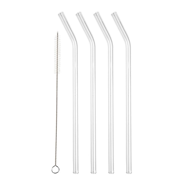 Lyngby Glas sugrör med böj på 21,5 cm är ett stilfullt set med fyra återanvändbara glas-sugrör som passar perfekt för vardagsbruk. Tillverkade av slitstarkt borosilikatglas tål de både varma och kalla drycker, vilket gör dem idealiska för allt från varma tedrycker till kalla smoothies och milkshakes.