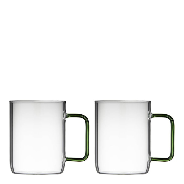 Lyngby Torino glasmuggar i 2-pack med en kapacitet på 40 cl är ett perfekt val för dig som vill ha stiliga och praktiska koppar för både varma och kalla drycker. Dessa lätta glasmuggar med handtag är tillverkade av borosilikatglas, känt för sin styrka och repbeständighet.